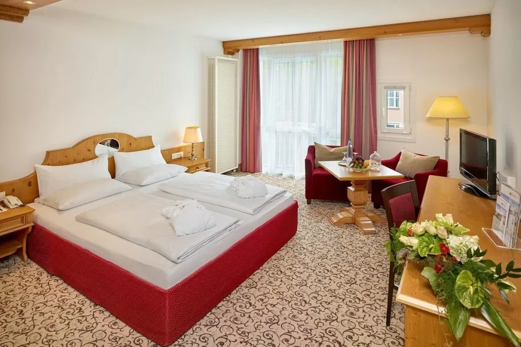 Doppelzimmer First Class: 26-30 qm, Doppel, renoviert, Dusche oder Badewanne, Bademantel, Badeslipper, Haartrockner, Minibar kostenpflichtig, Safe, TV, WLAN, französischer Balkon